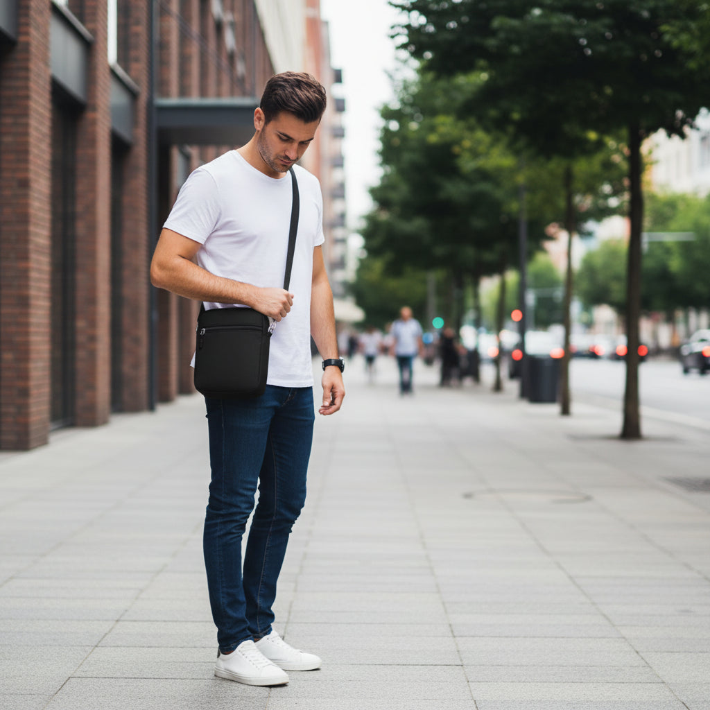 Cette petite sacoche bandoulière allie design moderne et fonctionnalité intelligente pour vous accompagner partout — sans vous encombrer.