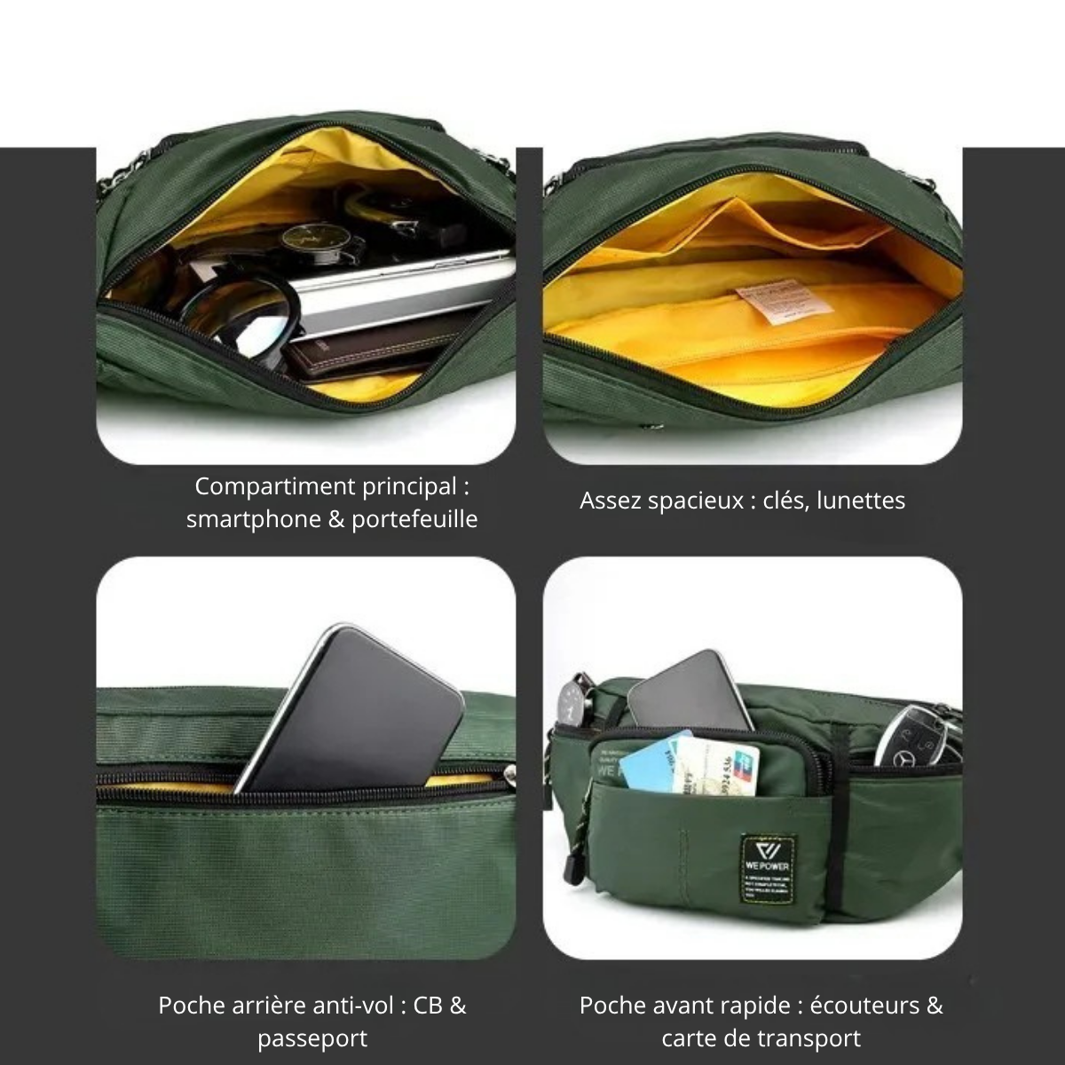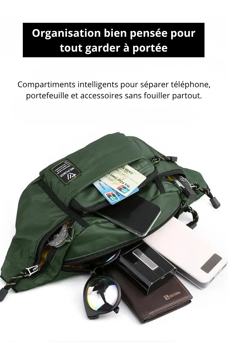 Cette sacoche banane a été conçue pour ceux qui veulent garder l’essentiel à portée de main sans se charger.