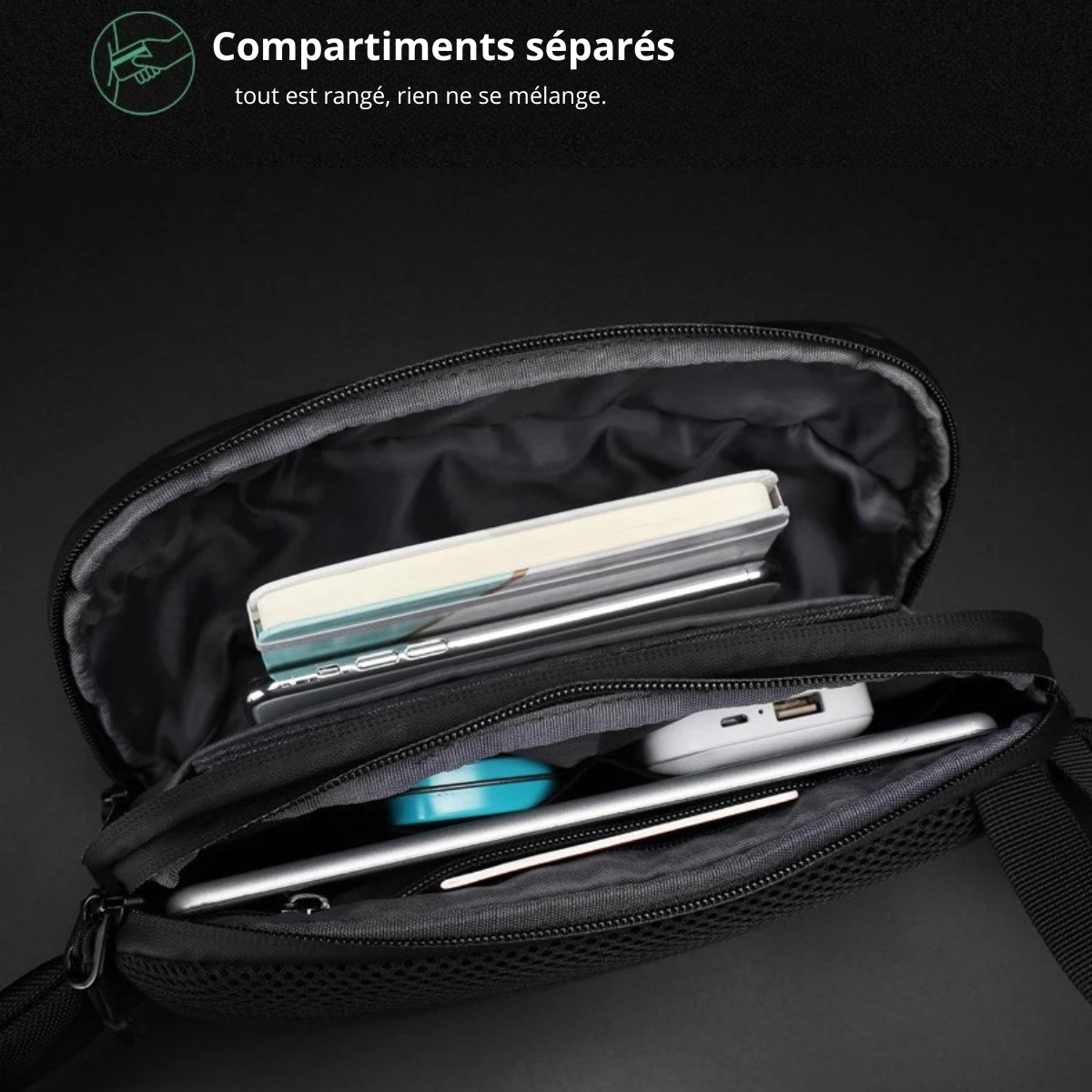 Polyvalente : utilisable comme sac de poitrine, sac de voyage ou sacoche de cours.