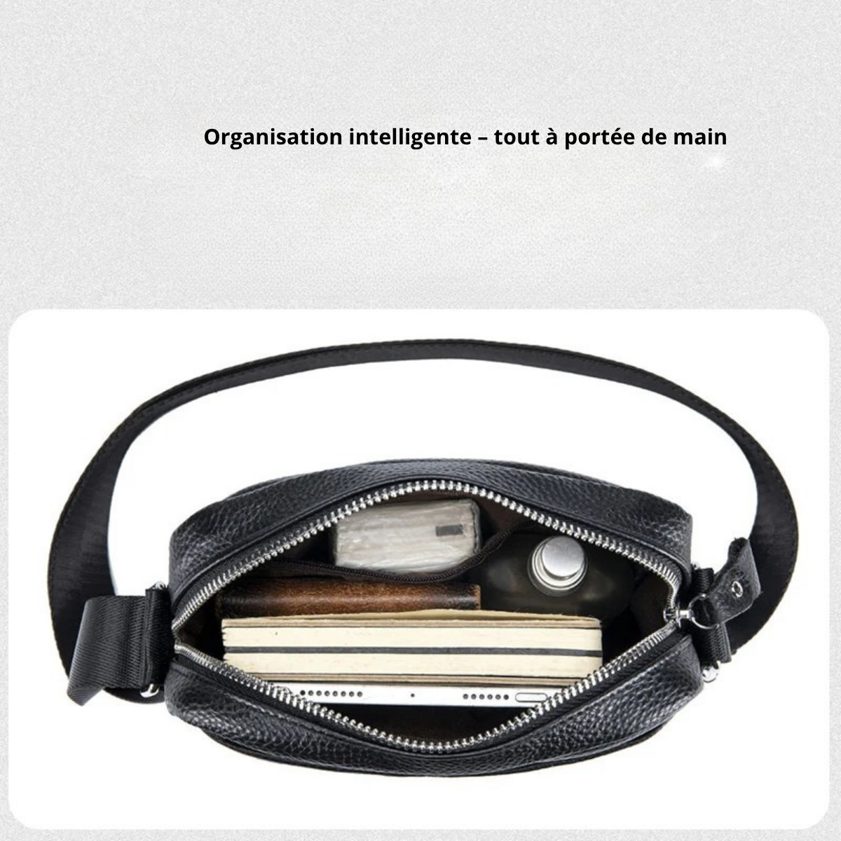 Son cuir souple et robuste garantit une tenue parfaite au fil des années, tandis que sa bandoulière ajustable et confortable vous assure une liberté de mouvement en toute élégance.
