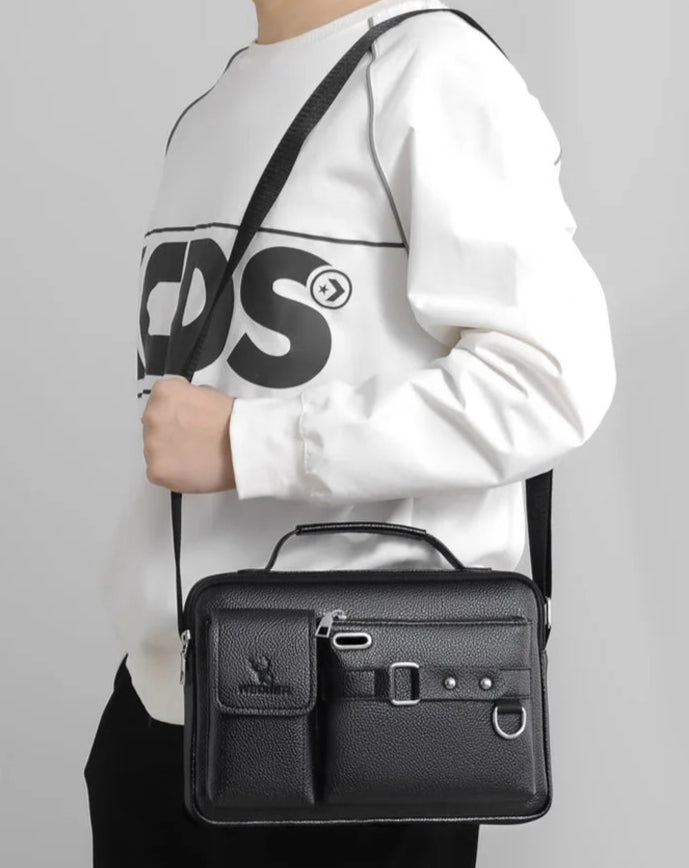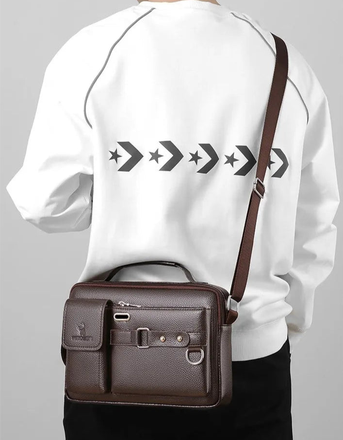 Pensée pour les hommes exigeants qui allient style et efficacité, cette sacoche bandoulière marie avec finesse design raffiné et ingéniosité pratique.