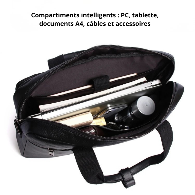 Fini les sacoches désordonnées : profitez d’un intérieur intelligent et compartimenté, avec des espaces dédiés pour votre ordinateur, chargeur, documents et accessoires.